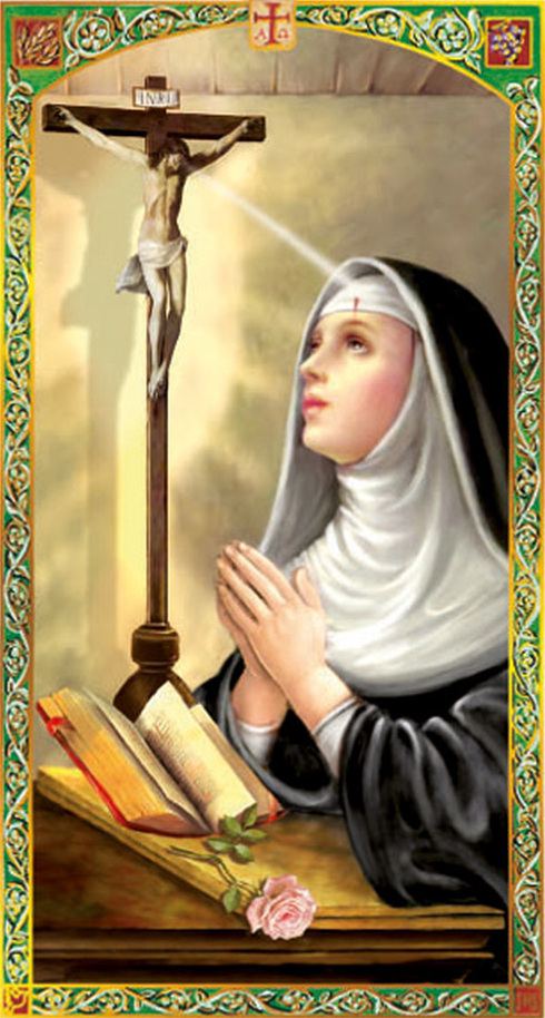 Oh gloriosa Santa Rita, que participó milagrosamente en la dolorosa Pasión de nuestro Señor Jesucristo, obtén para mí la gracia de sufrir con resignación los problemas de esta vida y protégeme en todas mis necesidades.